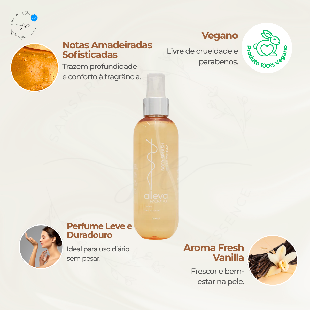 O Body Splash Alleva Skin Fresh Vanilla é a expressão perfeita do equilíbrio entre frescor, conforto e sofisticação.