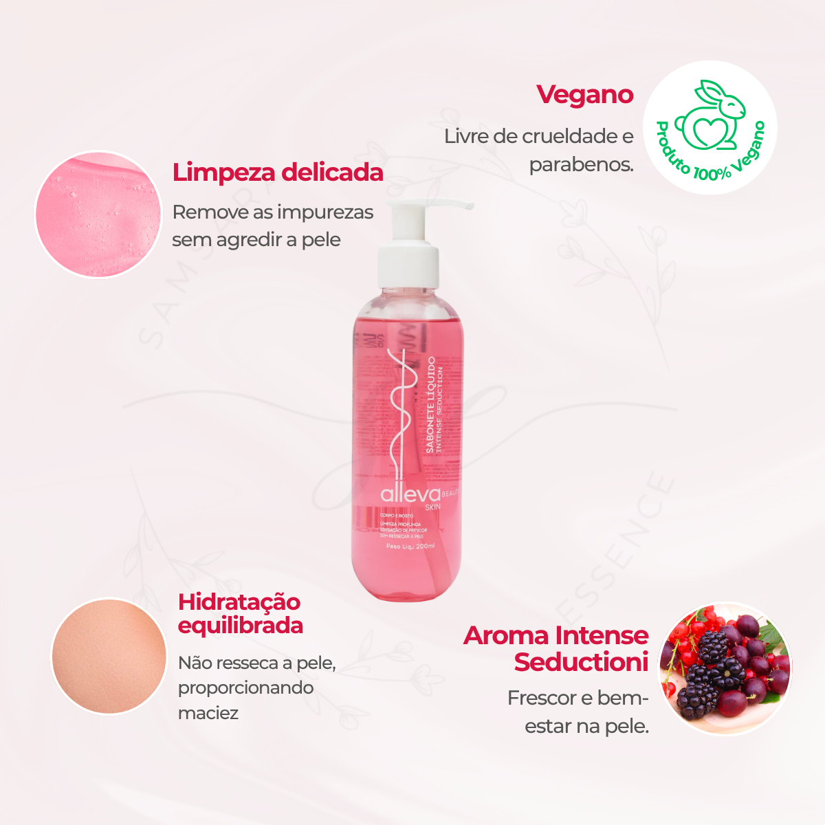 Sabonete Líquido Alleva Intense Seduction – Limpeza Suave, Maciez e Aroma Envolvente